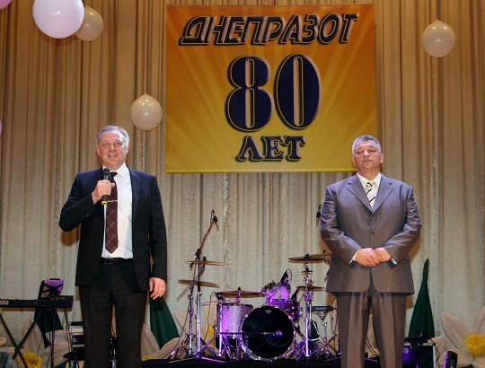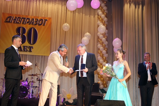 Привітали великий, дружній колектив підприємства з ювілеєм Голова Правління Акціонерного Товариства «ДНІПРОАЗОТ» Сергій Леонідович Сідоров та голова профспілкового комітету Григорій Володимирович Потуремець.