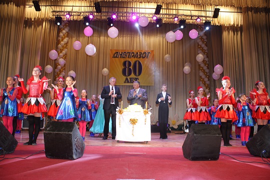 На завершення урочистої частини свята танцівніці колективу «LeGrand» вивозять на сцену торт зі свічками. Задути свічки на святковому торті запрошено Голову Правління Акціонерного Товариства «ДНІПРОАЗОТ» Сідорова Сергія Леонідовича та Голову профспілкового комітету Потуремця Григорія Володимировича.