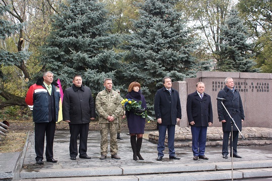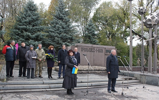 Мітинг почався з внесення на площу біля меморіалу державних прапорів України та міста Дніпродзержинська, а потім, з коротким вітальним словом до присутніх звернулася директор народного музею історії ПАТ «ДНІПРОАЗОТ» Л.Я.Орлянська.
