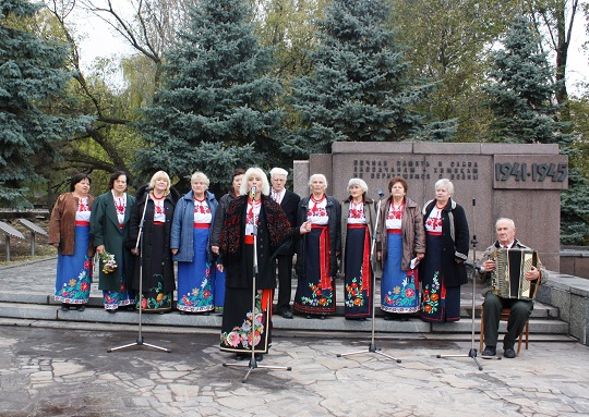 Першу ноту мітингу – урочисту й хвилюючу поставив хор ветеранів ПАТ «ДНІПРОАЗОТ» «Журавушка», виконав відому пісню на військову тематику «Степом, Степом».