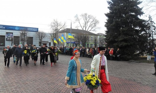 Відбулася церемонія покладання квітів до підніжжя пам'ятника Тарасу Шевченку біля міського театру. Пам'ять загиблих за незалежність України вшанували хвилиною мовчання.