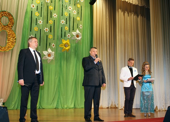 На адресу милих і чарівних трудівниць нашого підприємства в той вечір прозвучало чимало добрих слів і теплих, сердечних привітань – з вуст Голови Правління ПАТ «ДНІПРОАЗОТ» С.Л.Сідорова і голови профспілкового комітету підприємства Г.В.Потуремця. Ведучі зачитали також привітання, що надійшли від мера Дніпродзержинська А.Л.Білоусова та від народного депутата України О.І.Дубініна.