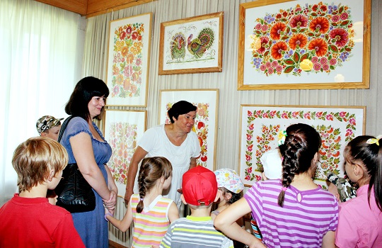 Діти і вихователі комунального закладу побували в виставковому залі Центру і художніх майстеренях, познайомилися зі справжніми майстрами Петриківського розпису, які не тільки є професіоналами своєї справи, а й беруть активну участь у міжнародних всеукраїнських художніх виставках, що забезпечують збереження і творчий розвиток народних художніх традицій петриківського розпису в сучасних умовах.