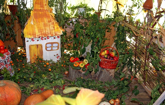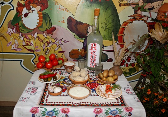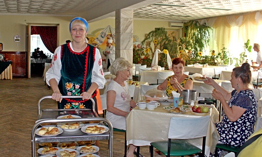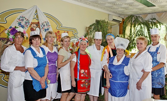 6 вересня в ЛОК «Хімік» відпочиваючих порадували приємним сюрпризом – чудовим меню в рамках Дня української кухні. Тематично прикрашений обідній зал: за тином, прикрашеним соняшниками і керамічними казанками, красувалися величезні гарбузи і кавуни – не муляжі, а дивом доставлені з полів городні красені. На столі поруч з декоративним куточком чудово креативні (а попросту творчі, щедрі на вигадку) організатори свята, адресованого розуму, серцю і шлунку одночасно, виставили макітру з варениками. Стіни їдальні були прикрашені рушниками, кожен з яких заслуговує особливої історії – вишиті вони майстринями до 50-х років минулого століття, а фарби збереглися первозданні - яскраві, веселі, соковиті. Вдосталь намилувавшись на видовища, відпочиваючі згадали і про хліб. В меню святкового дня був апетитний борщ зі сметаною, галушки з тушкованою куркою і підливою, сало, компот зі слив. А на вечерю – ковбаски українські, картопля з кропом, пиріжки-куточки зі сливами.