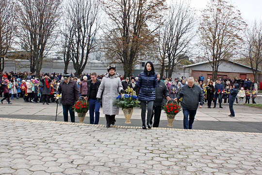 На завершення мітингу до підніжжя меморіалу щорічно покладаються живі квіти. І в цей раз кошики з квітами встановлюють ветерани, керівники підприємства і представники профспілкового комітету «ДНІПРОАЗОТу», букети квітів несуть до пам'ятника працівники підприємства, школярі, жителі Південного району. Таким чином представники відразу декількох поколінь кам'янчан висловлюють свою глибоку вдячність воїнам-визволителям, що сімдесят чотири роки тому подарували нам життя, свободу і можливість мирно трудитися.