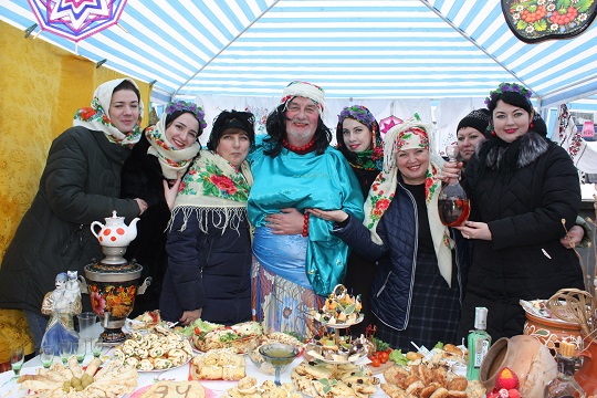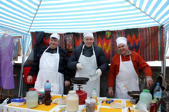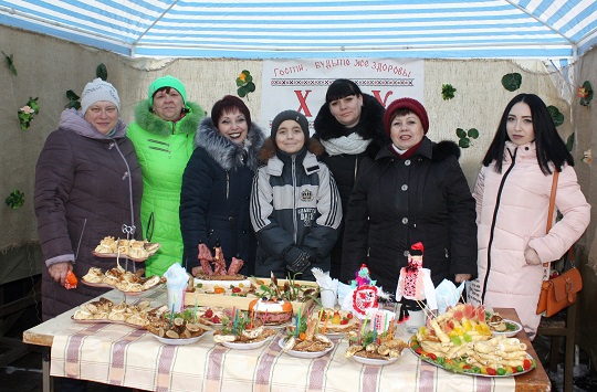 За доброю традицією свої намети з виробами для частування відкрили команди цехів і підрозділів «ДНІПРОАЗОТу». Команда АТЦ смажила млинці прямо на очах у відвідувачів. Естетика істинно народного свята проглядала і в нарядах хлібосольних азотчиків – групу енергоуправління прикрасив, як завжди, начальник ЕТЛ К.П.Дорошенко; і в оформленні столів: ХБУ, цех рідкого хлору і соляної кислоти, ЛОК «Хімік», УПВТНС, ЦПА, як і АТЦ – були на висоті. Одній з майстринь вдалося приготувати мереживні, ажурні млинці – верх кулінарного мистецтва! Кожна команда не просто щедро пригощала гостей, а й презентацію Масляної приготувала на свій лад – з віршами, коломийками, піснями під баян та з народними танцями. Спасибі талановитим майстрам! Все заслужили подяки. І всі отримали грамоти з рук С.Л.Сідорова.
