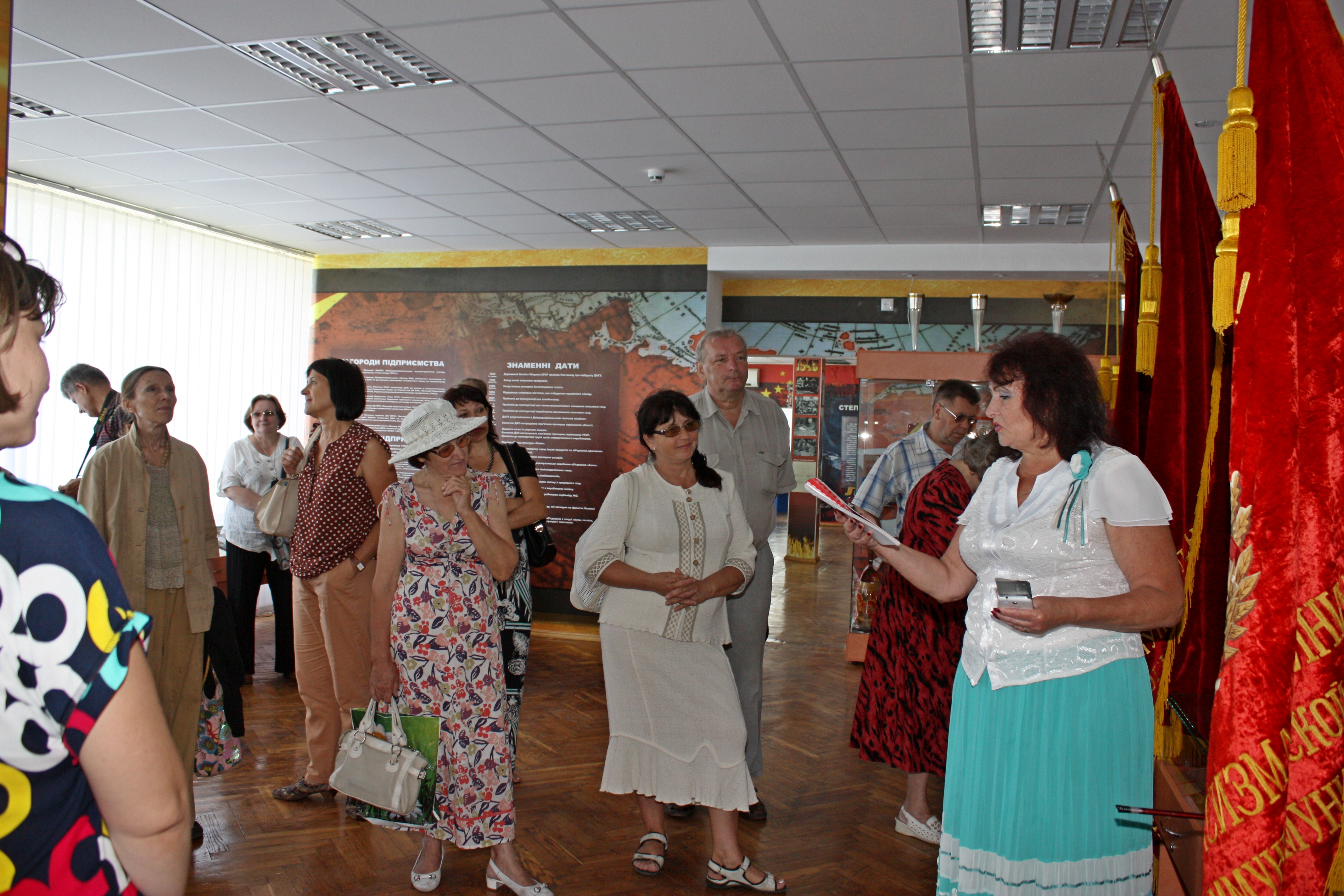 Назнімках:краєзнавцітовариства «Кам'янське- Дніпродзержинськ» наекскурсіївнародному музеїісторіїПАТ «ДНІПРОАЗОТ».